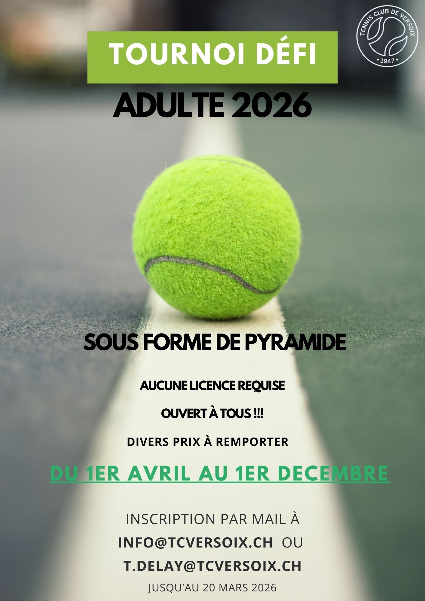 « Tous les Évènements Cet évènement est passé. avril 3 @ 11:21 am « Tous les Évènements Cet évènement est passé. Tournoi Défi 2026 avril 1 @ 8:00 am - septembre 30 @ 8:00 pm « Horaires secrétariat Ajouter au calendrier Google Agenda iCalendar Outlook 365 Outlook Live Détails Début : avril 1 @ 8:00 am Fin : septembre 30 @ 8:00 pm Catégorie d’Évènement: accueil Ajouter au calendrier Google Agenda iCalendar Outlook 365 Outlook Live Détails Début : avril 1 @ 8:00 am Fin : septembre 30 @ 8:00 pm Catégorie d’Évènement: accueil