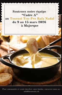 Dans le cadre du « Groupe Compétition » de l’école de tennis, il a été décidé de renouveler une expérience formidable déjà organisée deux fois par le passé (en 2018 et en 2023), qui consiste en un camp à la Rafa Nadal Academy, à Majorque. Nous proposons cette expérience unique à une douzaine de nos meilleurs éléments âgés de 12 à 15 ans, qui aura lieu du 7 au 14 mars 2026. Cet événement inoubliable leur permettra de jouer contre des jeunes de différents pays lors d’un tournoi multi-chances garantissant entre 5 et 7 matchs à chacun.